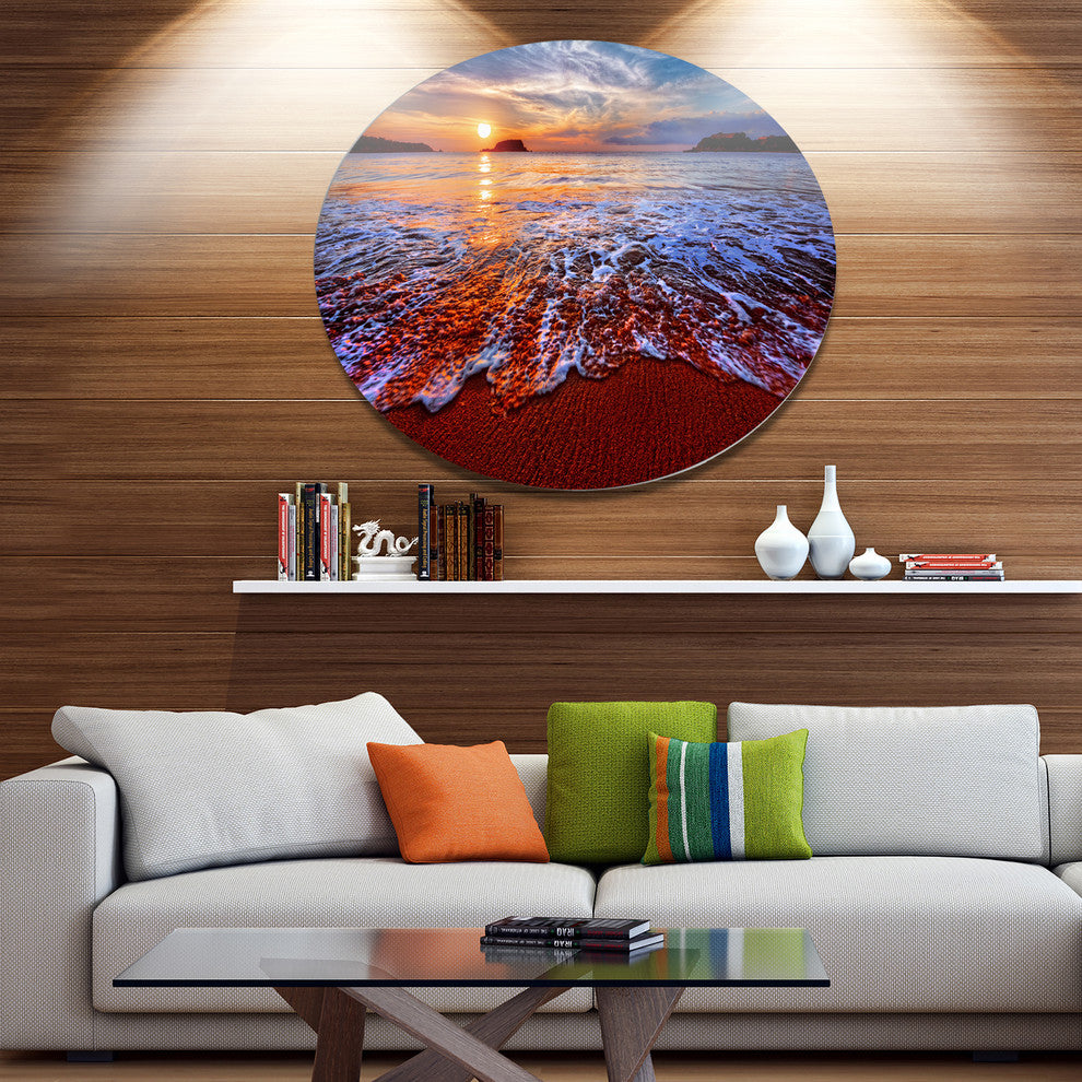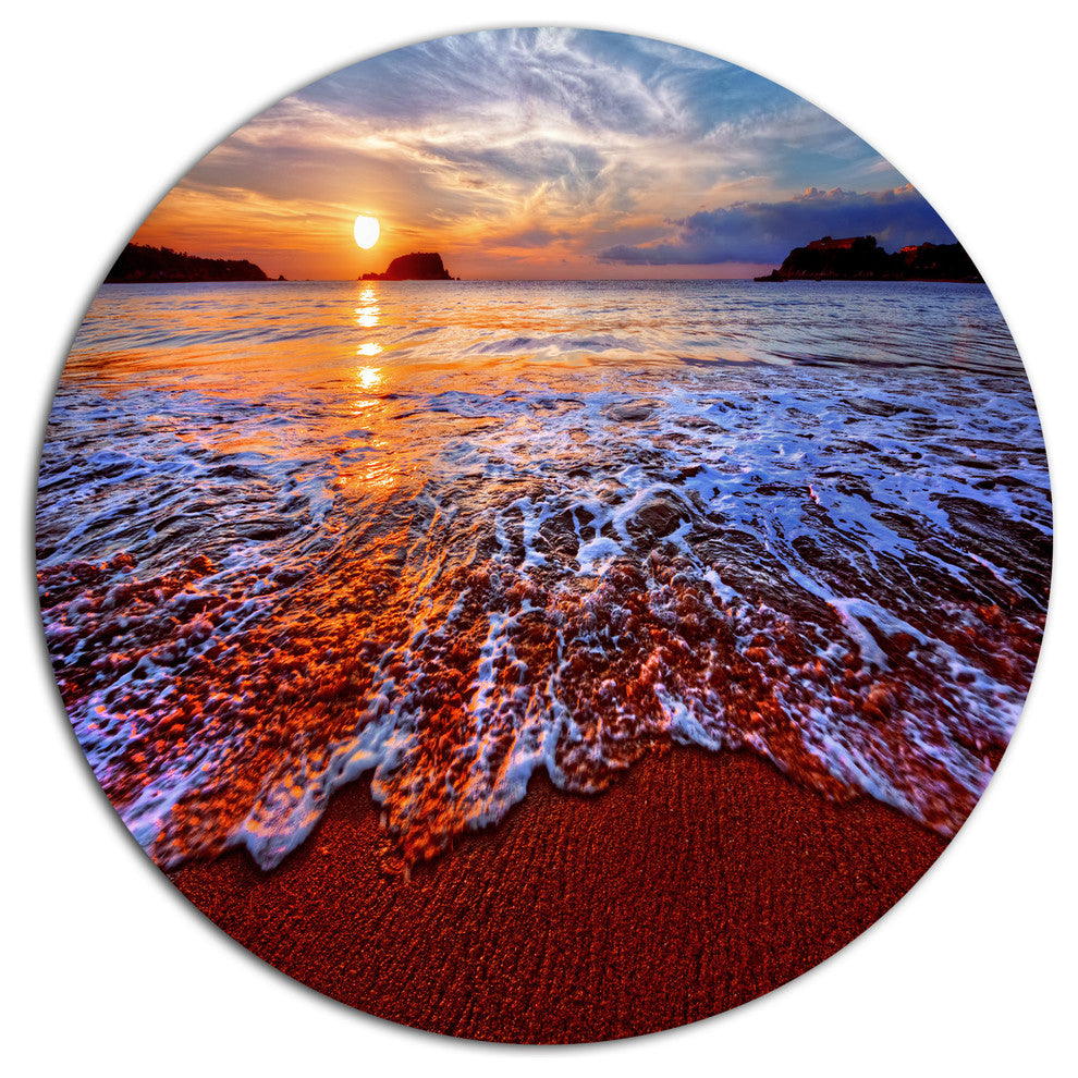 Colorful Sunset With Bright Waters, Seashore Round Metal Wall Art, 11"
