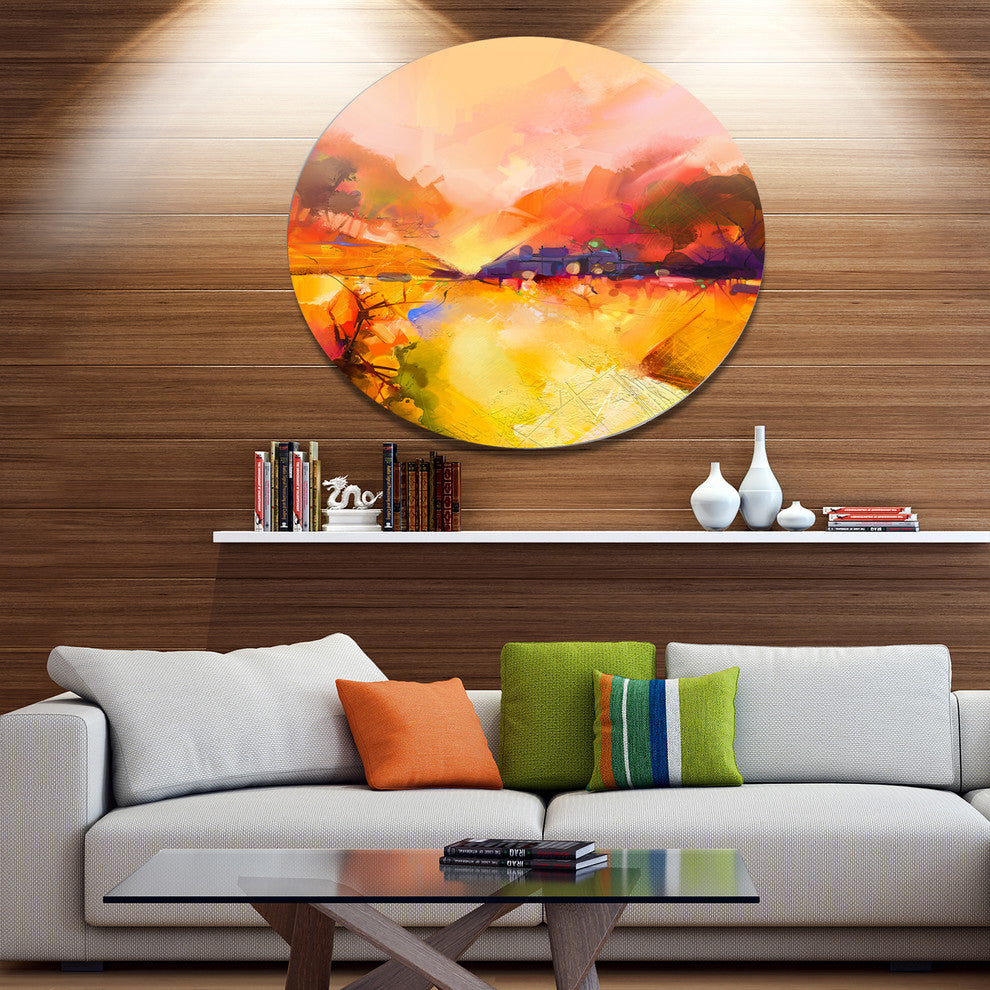 Bring Contemporary Abstraction to your home with this large Circle Metal wall art. This Colorful Yellow Red Floral Background Metal Artwork makes it the focal point of any room or office.