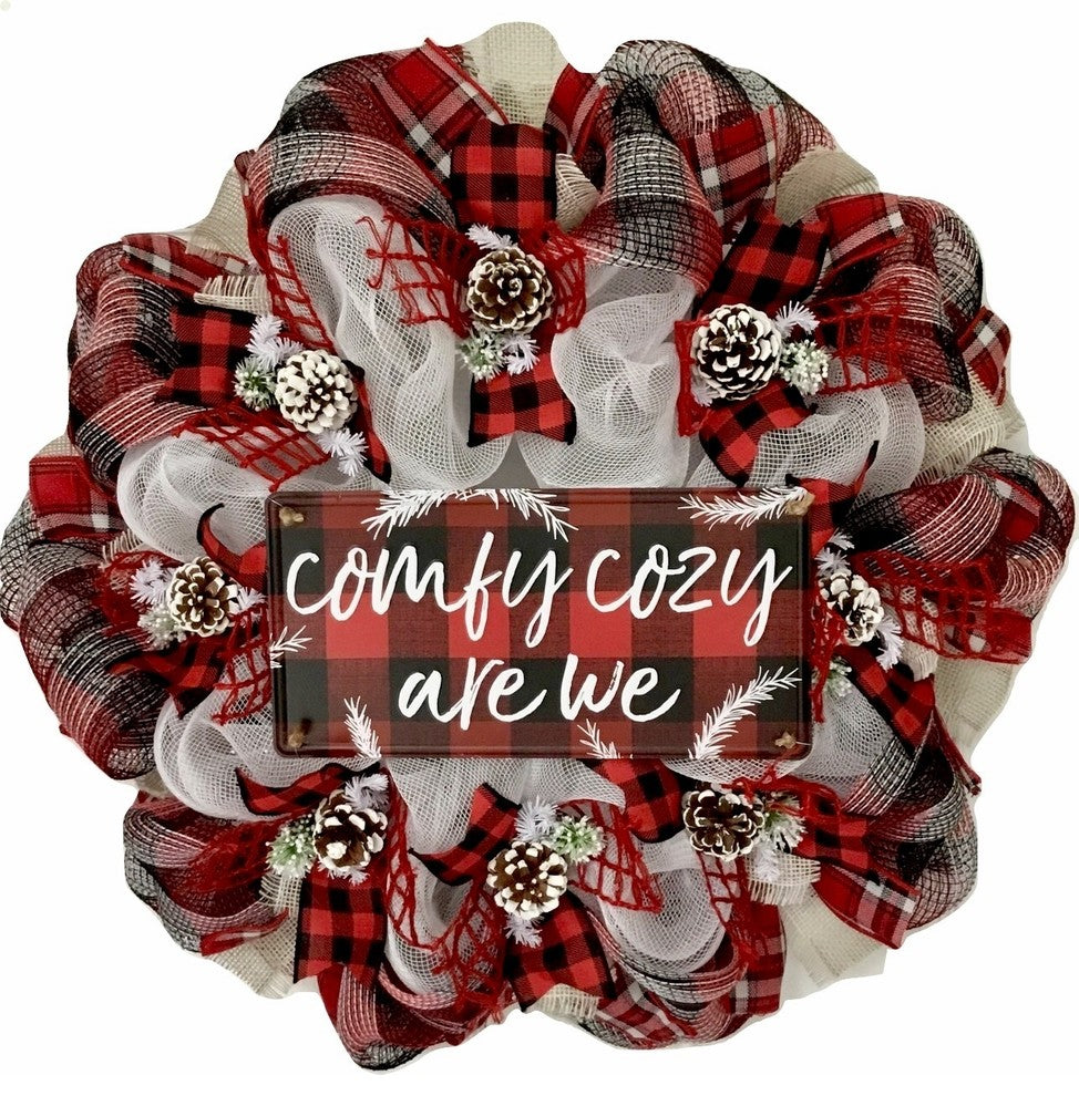 Comfy Cozy Are We Winter Wreath Handmade Deco Mesh