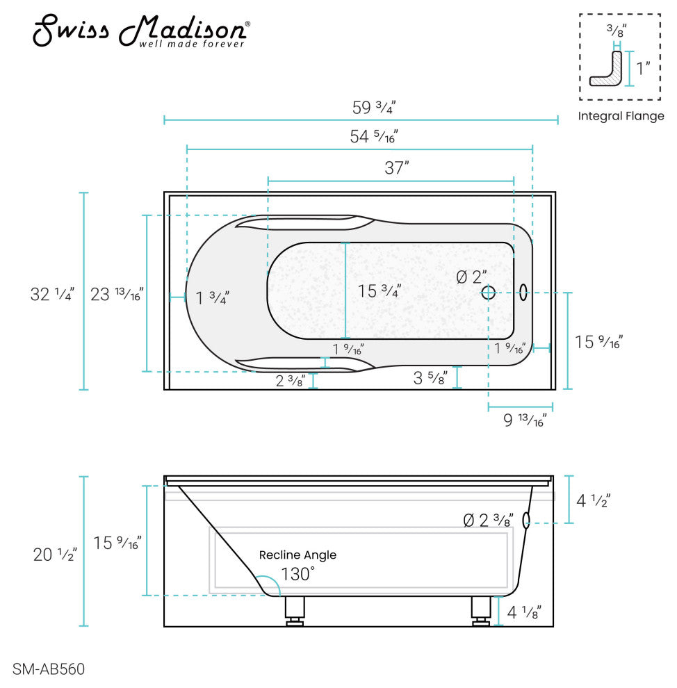 Concorde 60"x32" Acrylic, Alcove, Left-Hand Drain