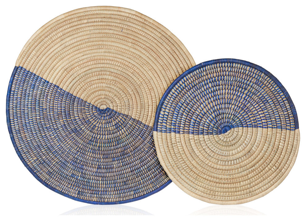 The Connecting Shapes Wall Decor Set is part of the Wokongora Collection (Wokongora means "beautiful" in the local language) from Malawi, Africa. This set comes with two pieces that can be displayed horizontally (connected) or positioned in a vertical or other pattern of choice. There is lots of versatility!! The fact that this can take an artisan up to five days to make one piece of art underscores just how special this is. This beautifully woven work was created by talented weavers from Malawi, Africa using age-old basketry techniques that have been a cornerstone of African communities since the beginning of time. Baskets have long been used to transport water, food, and goods (typically atop the head). The art is made from local mulaza palm leaves that are harvested, dried, threaded, and dyed. The painstaking detail of each coil, sunburst, or stitch is evident in the intricate designs; one piece can take five days to complete. It''s common in the villages to see groups of artisans under the shade of mango trees working collectively Hangs Vertically approximately 48 inches if connected; the diameter of the large sphere is approximately 29 inches, the diameter of the small sphere is approximately 17.5 inches. Coiling Technique creates a very sturdy structure. Loop on back of each for hanging. Care: Avoid placing in direct sunlight, as doing so may cause the delicate dye to fade. Socially Responsible/Fair Trade: Malawi is one of the poorest countries in Africa with heavy reliance on agriculture. With few other industries, food scarcity is a real issue when climate negatively impacts crops. Purchasing this piece continues to support the age-old crafts of Malawi and create new economic opportunities. Meet the Makers Meet the talented weavers from Malawi, Africa who create the Global Crafts Wokongora Collection (meaning "beautiful" in the local language). They live in southern Malawi in villages far away from the hustle and bustle of modern Western societies. With no electricity, the rhythm of the day is centered around the sun and early risings to gather fresh water. Life is simple with emphasis on family and community. Groups gather under mango trees and work collectively. If it rains, work stops and life pauses. These pieces of art travelled long and far to grace your home. The artform celebrates age-old basketry that has been a cornerstone of African communities since the beginning of time. Baskets have long been used to transport water, food, and goods (typically atop the head). Enjoy your treasured art. Purchases create economic opportunities in one of of Africa''s poorest countries while celebrating traditional craftwork. This is handmade art; please expect small variations from product to product. Each item is a unique work of art.