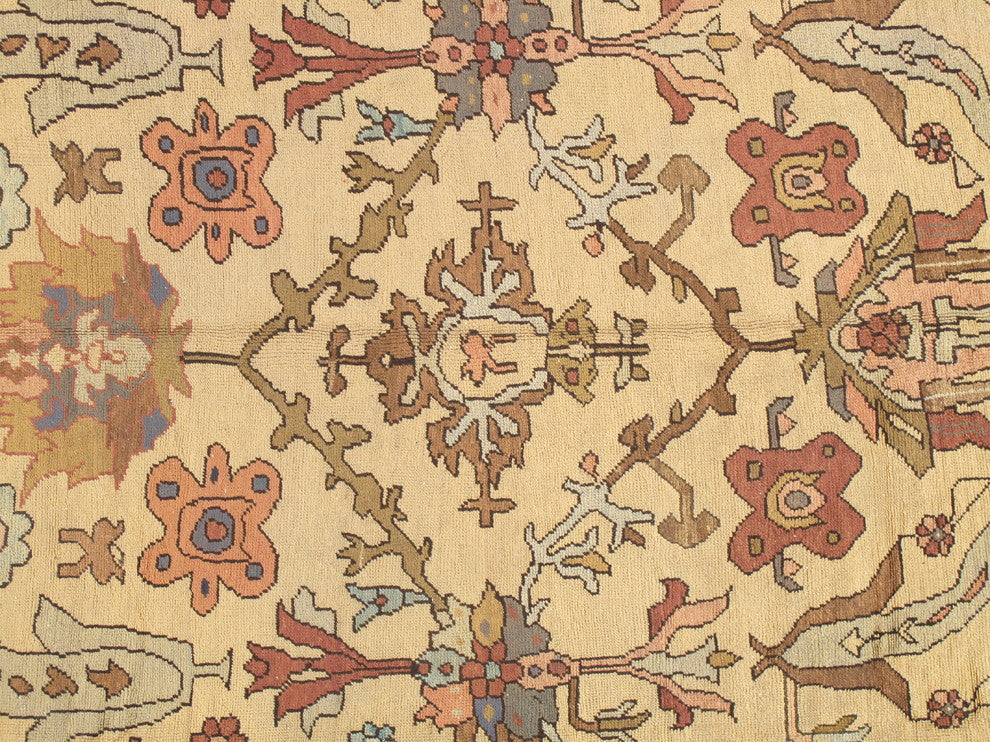Antique Serapi carpet with delicately rendered floral motifs throughout. Antique Serapi carpets are among the most sought-after carpets, particularly in America and England. Woven by highly skilled artisans in northwestern Iran, the carpets express interpretations of a similar design origin.