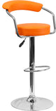 Contemporary Adjustable Height Barstool With Chrome Base, Orange