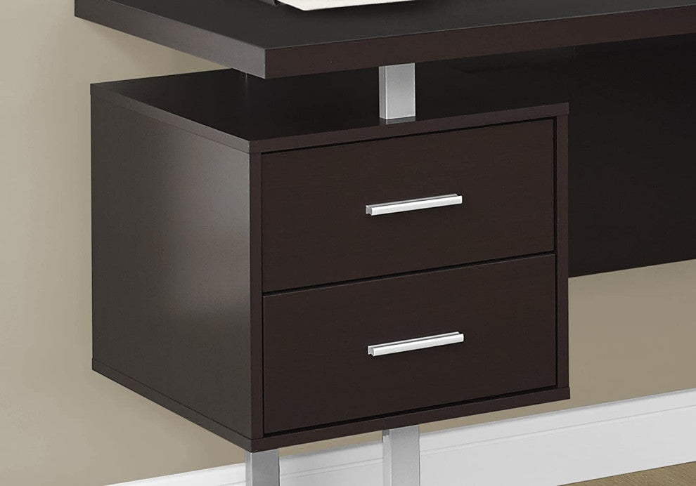 Contemporary Desk, Corner Design With Silver Frame and Floating Top, Cappuccino