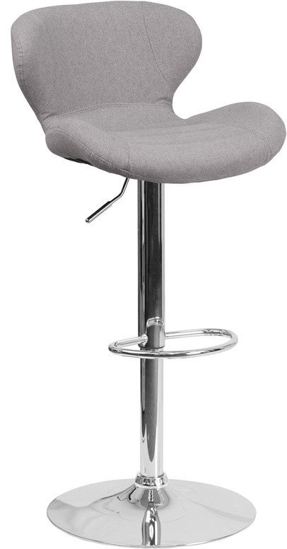Contemporary Gray Fabric Adjustable Barstool With Chrome Base