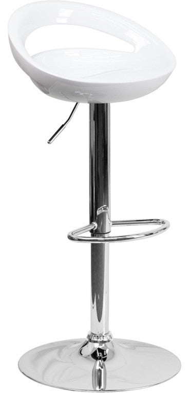 Contemporary White Plastic Adjustable Barstool With Chrome Base