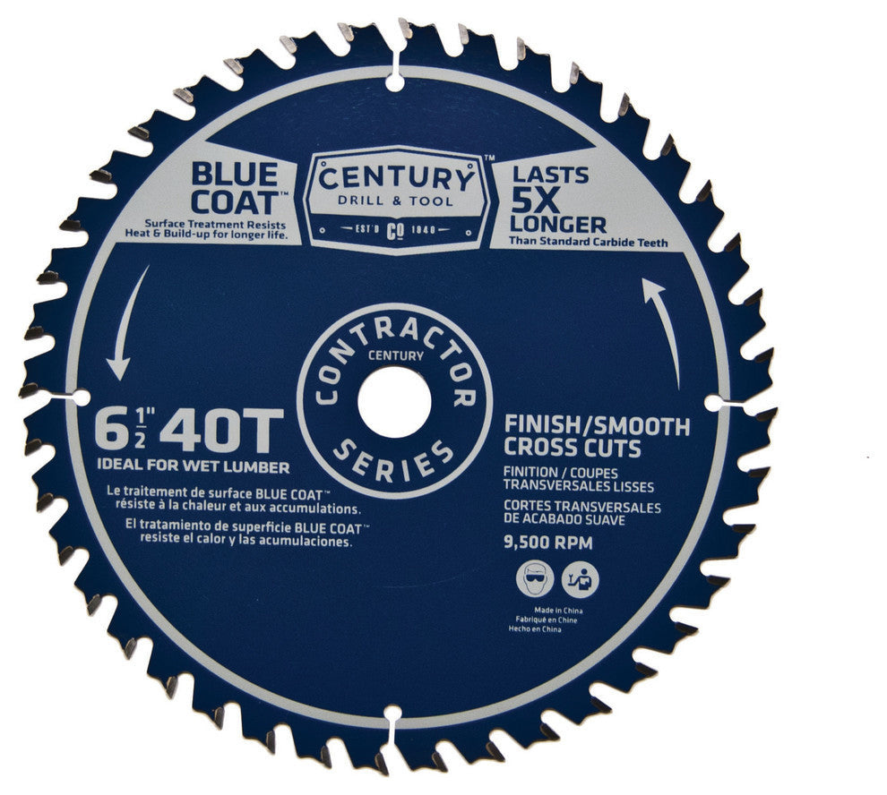 Circular Saw Blade Contractor Series Thin Kerf-Finishing Blade 6-1/2" X 40T. 5/8'' Arbor. Safe Maximum Rpm Speed 9,500. Accurate Rip Cuts.