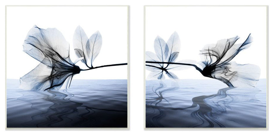 Contrast Black And Blue Flower Water Design 2-Piece Set, 12"x12"