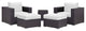 Convene 5 Piece Outdoor Patio Sectional Set - Espresso WhiteGather stages of sensitivity with the Convene outdoor sectional series. Made with a synthetic rattan weave and a powder-coated aluminum frame, Convene is a versatile outdoor collection that shifts and combines according to the spontaneous needs of the moment. Outfitted with all-weather fabric cushions, leave a positive impression on friends and family while enhancing your patio, backyard, or poolside repast in this series of palpable distinction. This installment of the series is an Outdoor Patio Sectional Set.Set Includes:One - Convene Outdoor Patio Side Table SectionTwo - Convene Outdoor Patio Armchair SectionTwo - Convene Outdoor Patio Ottoman SectionSynthetic Rattan WeavePowder Coated Aluminum FrameWater & UV ResistantMachine Washable Cushion CoversEasy To Clean Tempered Glass TopShips Pre-AssembledOverall Product Dimensions: 70"L x 92.5"W x 33"HOverall Armchair Dimensions: 35"L x 37.5"W x 25.5 - 33"HSeat Dimensions: 22.5"L x 25"W x 17.5"HArmrest Dimensions: 6"W x 25.5"HCushion Thickness: 5"HOverall Side Table Dimensions: 17.5"L x 17.5"W x 18"HFloor to Underside of Table: 17.5"HBase Dimensions: 17.5"L x 17.5"WOverall Ottoman Dimensions: 25"L x 25"W x 12 - 17.5"HBase Dimensions: 25"L x 25"WProduct Materials: foam density is 33kg/m3Polyester fiber for back cushionWaterproof nonwoven fabric inner cover powder coated aluminum tube framePolished 201 stainless steel L legrattan with Weimas fabric outer cover.