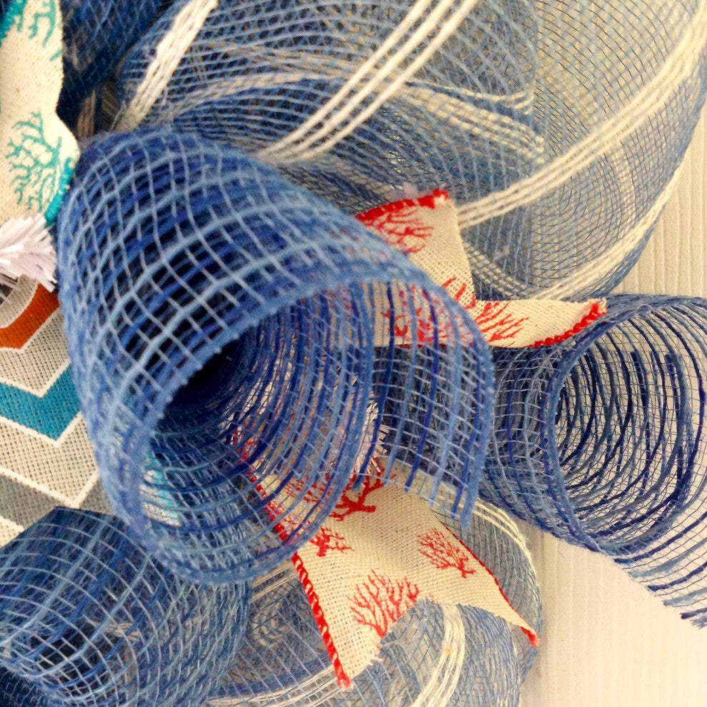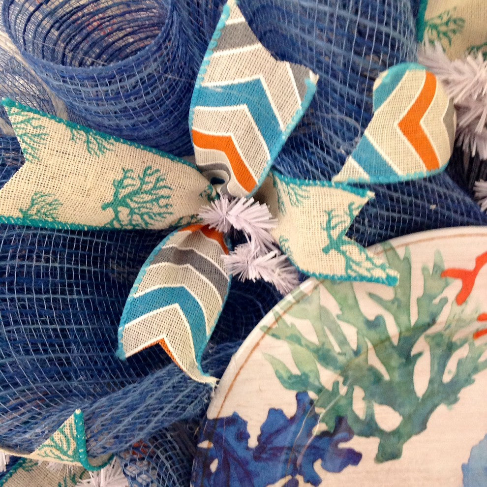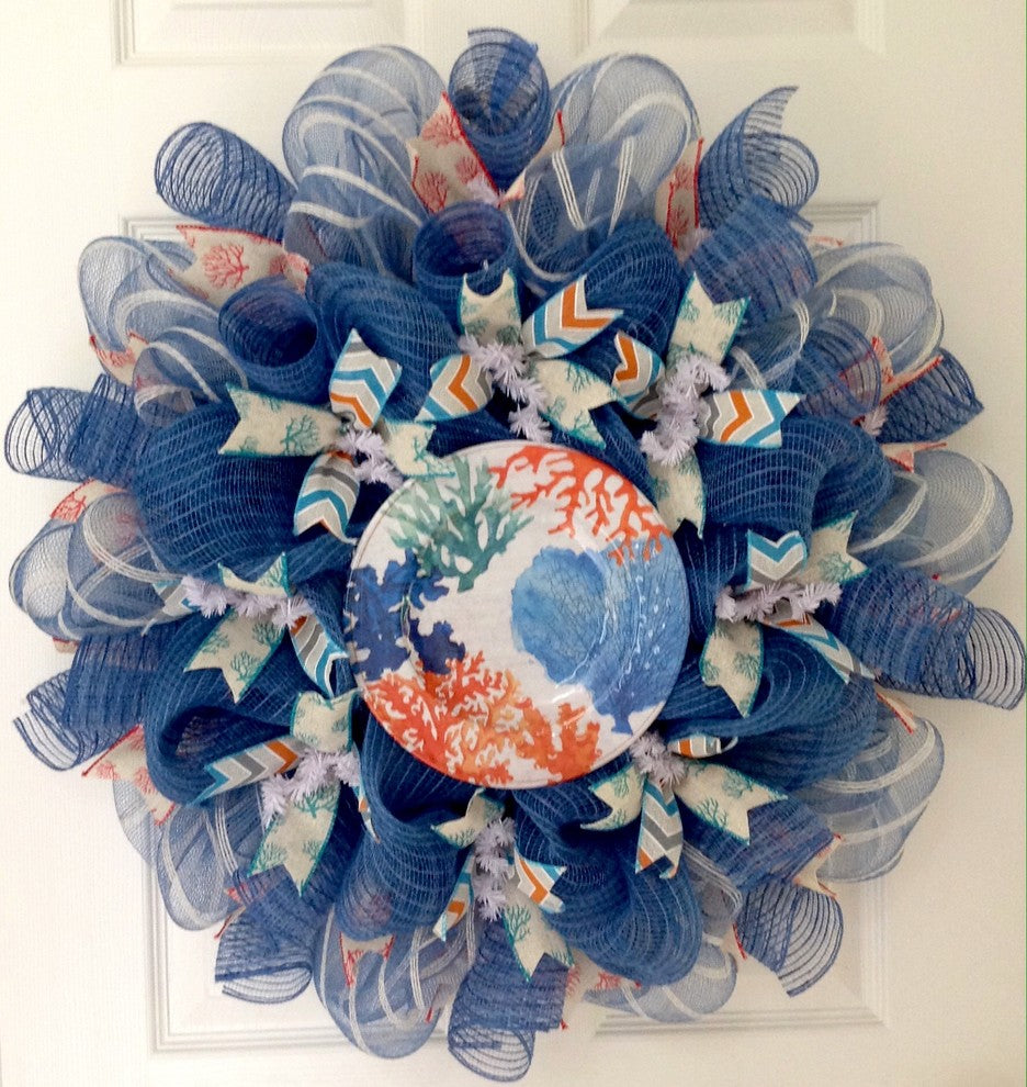 Coral Reef Decorative Plate Beach Or Coastal Handmade Deco Mesh Wreath