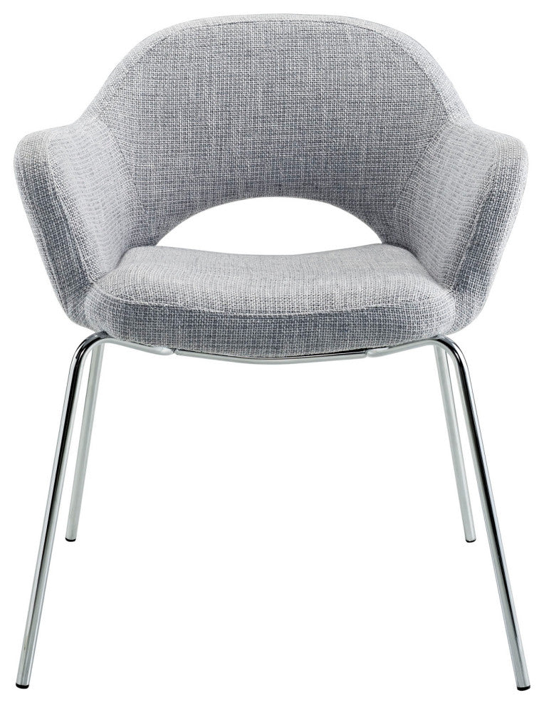 Participate in renewed growth and actualization with the Cordelia Side Chair. Sit comfortably as an aspirational back and up-surging arms complement a dual-tone tweed fabric cushion. Sleek chrome legs solidify the progress as unlocked potentials are established with ease. Set Includes: One - Cordelia ArmchairComfort combined with the solid formDual-tone upholstered tweed cushionChrome legs with non-marking feetAssembly RequiredOverall Product Dimensions: 25"L x 23"W x 31"HSeat Dimensions: 18.5"L x 17.5"W x 19"HArmrest Height: 25.5"HProduct Weight: 21 LBsProduct Color: Light GrayProduct Material: fabric ?55?polyester fibre 45? acrylic fibers?; PP material inside+foam+fabric,chrome plating leg,PP foot glide.; Chair Weight Capacity: 331 lbs.