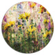 Bring Contemporary Abstraction to your home with this large Circle Metal wall art. This Coreopsis Flowers and Paint Splashes Metal Artwork makes it the focal point of any room or office.