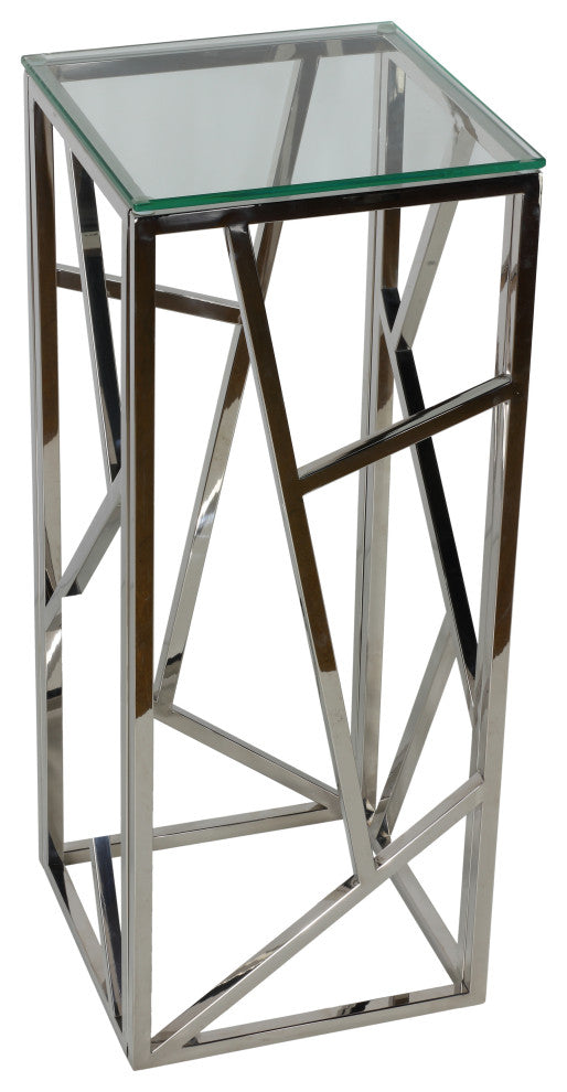 The Cortesi Home Pisa Plant Stand Table is designed with a modern style to assimilate the contemporary settings of your home decor. Stainless steel frame in a high gloss chrome finish is elegantly poised with clear tempered glass. This table is perfect to accent your room and show off your green thumb.
