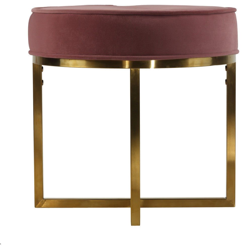 Add a touch of minimalist luxury with this eye-catching stool, featuring a blush pink velvet seat and high gloss stainless steel cross legs in a gold finish. The Rosa Round Ottoman by Cortesi Home is a decorative and functional accent to your home decor. Perfect size for a foot stool or extra seating without the bulky feel of a giant chair.