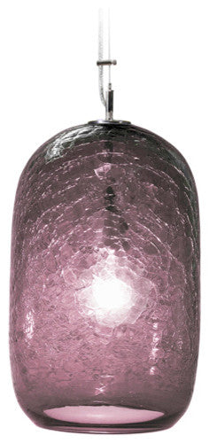 Enhance your interior with the Cosmos, a sleek pendant from our artisanal lighting collection. Crafted from hand-blown glass with a unique crackle finish, this fixture seamlessly fits into any décor. Choose from a variety of decorator colors for a stunning accent lamp. This collection is created by Tempo Luxury Home in New York. The organic process of hand-blowing makes each pendant unique.7" W X 13" H; 5" canopy. 60w; 120v. Edison-style filament bulb included. Ships with 6 ft. of electrical cord.
