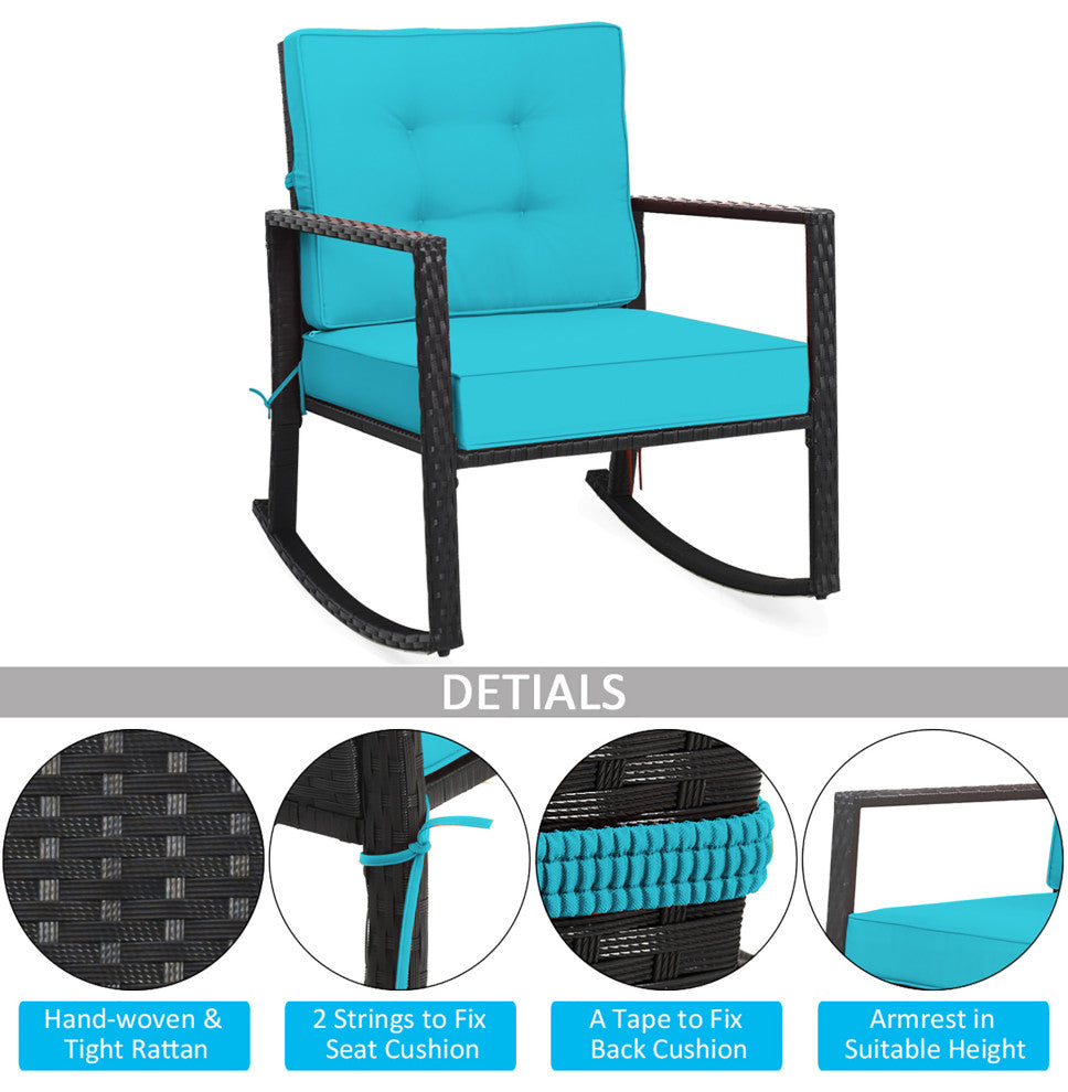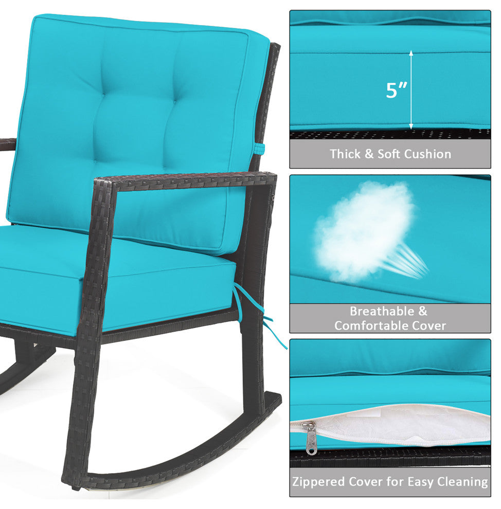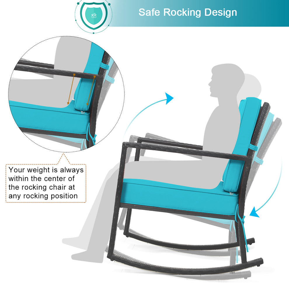 Costway 2PCS Patio Rattan Rocker Chair Glider Rocking Chair Cushion Turquoise