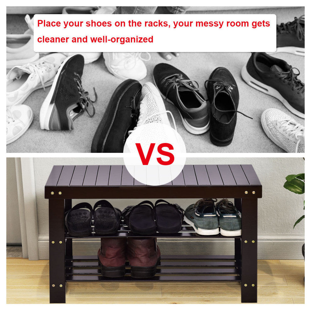 Costway 3 Tier Bamboo Shoe Rack Bench Storage Shelf Organizer Entryway Home