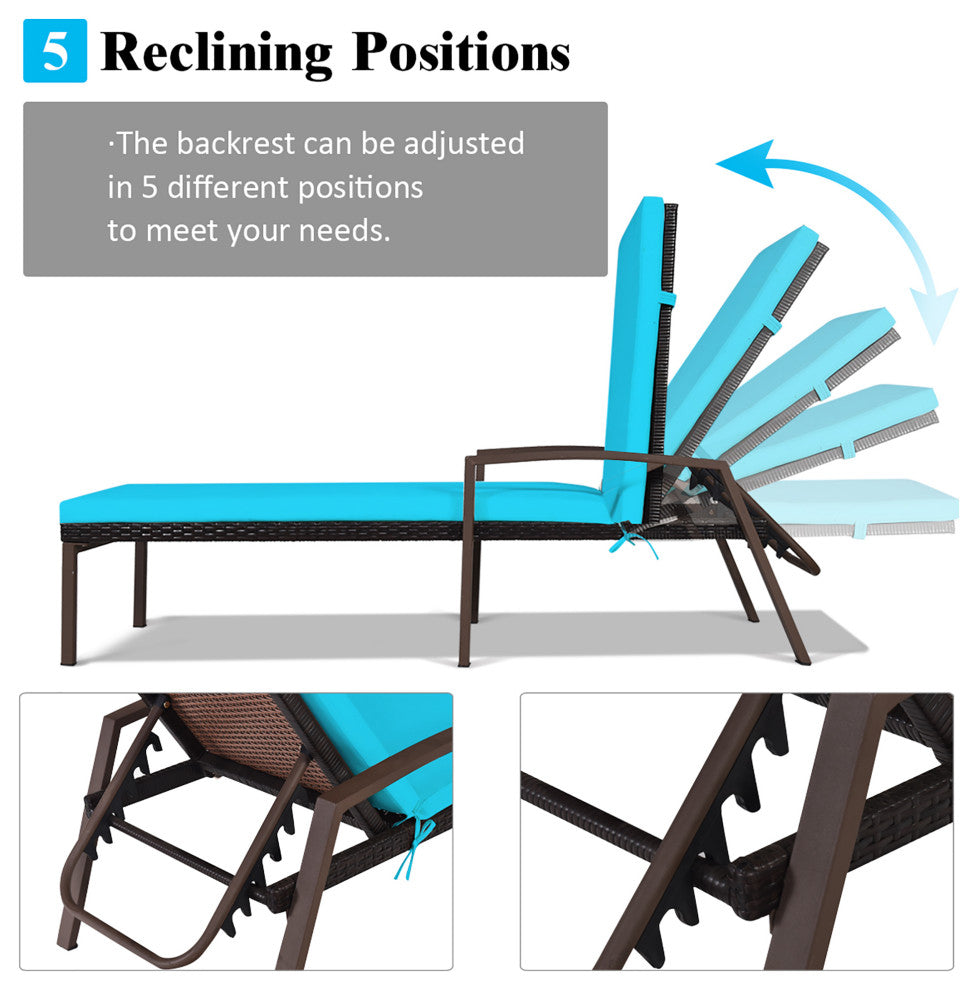 Costway Patio Rattan Lounge Chair Chaise Recliner Adjustable Cushion Turquoise