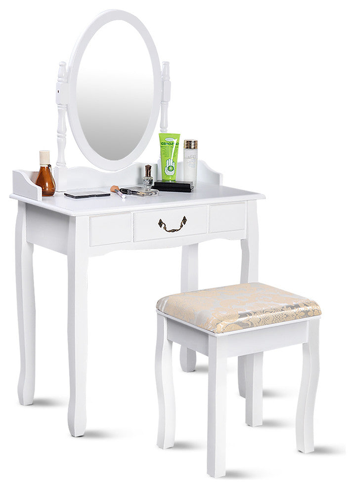 Costway Vanity Table Jewelry Makeup Desk Bench Dresser w/ Stool Drawer bathroom
