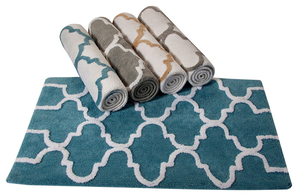 Two Tone Geometric Pattern. Latex Spray Non-Skid backing. 100% cotton provides high water absorbance, perfect for bathroom use. Super soft and plush. Machine washable; cold separately; gentle cycle; and dryable for easy care; less prone to shrinking or pilling and retains color better, even after repeated washings. Saffron Fabs bath rugs can be used as area rug in kitchen, bedroom, and living/family rooms. Besides homes, it can also be used in SPA, hotels, offices and other facilities. Available in a variety of delightful colors and sizes.Latex Spray Non-Skid Backing100% Cotton. Rectangle ShapeDual Color Geometric PatternMachine Washable and Dryable190 GSF Thickness/Weight "œGrams per Square Feet"�Available Sizes in Inches: 24x17, 34x21, 36x24, 50x30Available Colors: Beige, Blue, Chocolate, Coral, Gray, Sage Green, Yellow, White