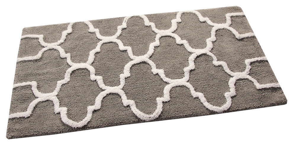Cotton Dual Color Geometric Pattern Bath Rug, Gray, 34"x21"