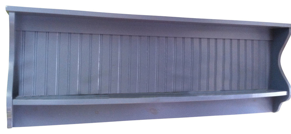 This rustic country shelf would look great in any room of your home. It''s primitive finish will add the perfect rustic look for a country setting. It works great to display your plates and knick knacks. It measures an overall 52" wide x 18" tall x 7.25" deep. The bottom shelf is bowed being 6"deep on the ends and 7.25" deep in the middle. The top shelf is 5.5" deep, both shelves have two plate grooves so you can easily display your plates without worry. There is 12.25" between shelves to allow a maximum display space. The item shown is finished in a Slate blue. For a small adder we can add hooks or shaker pegs to the bottom of the shelf. Check out our store for different designs.• • • •  IMPORTANT INFORMATION• • • • THIS ITEM IS NOT MADE UNTIL ORDEREDBuild and Ship Time: Current build time is estimated at 2-4 weeks. We do try to have items shipped out within 15 business days but this time fluctuates depending on the current work load. We apologize for any inconvenience this may cause. PLEASE NOTE: This item is built custom once it is ordered. The item you are purchasing is a handcrafted original. It may not appear exactly as shown. Additional items shown in the picture are not included but some are available for sale. All of our items are one of a kind as each item is handcrafted individually here in our shop in Ohio.
