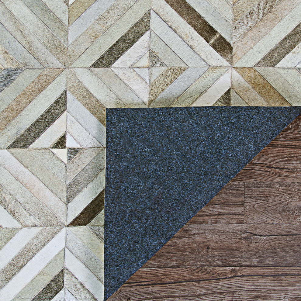 Cozy on up to the stunning area rugs of the Chalet Collection, just the piece needed for warming both your home and heart. Made of cowhide leather, these ethically sourced area rugs are a superb way to make a grandiose impression on any room. The collection features two designs, including a unique modern stripe and contemporary block pattern. The warm, snug colors showcased on each flatwoven design transform any room-setting of your home into a truly inviting environment. Each piece ensures quality, durability and lasting beauty because of the felt backing used. These urbane patterns are highlighted with dimension and depth that truly adds to their decorative appeal. Perfect for cabins, entryways, living rooms, and even in front of the fireplace, Chalet area rugs are a great choice for chic, indoor environments.