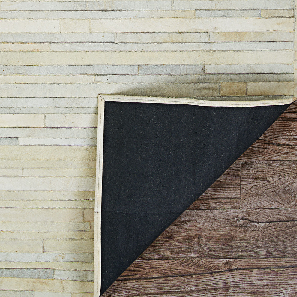 Cozy on up to the stunning area rugs of the Chalet Collection, just the piece needed for warming both your home and heart. Made of cowhide leather, these ethically sourced area rugs are a superb way to make a grandiose impression on any room. The collection features two designs, including a unique modern stripe and contemporary block pattern. The warm, snug colors showcased on each flatwoven design transform any room-setting of your home into a truly inviting environment. Each piece ensures quality, durability and lasting beauty because of the felt backing used. These urbane patterns are highlighted with dimension and depth that truly adds to their decorative appeal. Perfect for cabins, entryways, living rooms, and even in front of the fireplace, Chalet area rugs are a great choice for chic, indoor environments.