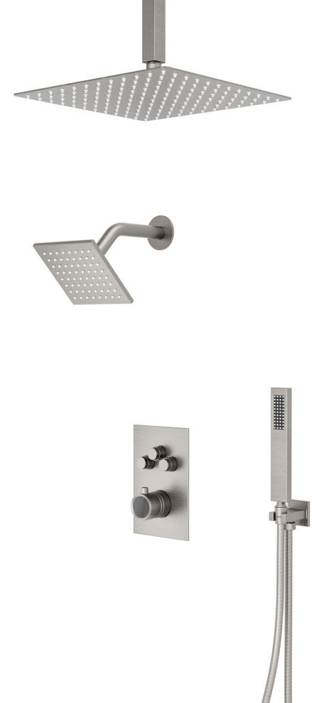 CRANACH CROZET Thermostatic Shower Kit, Dual Rain Shower Head, Push Button, Brushed Nickel