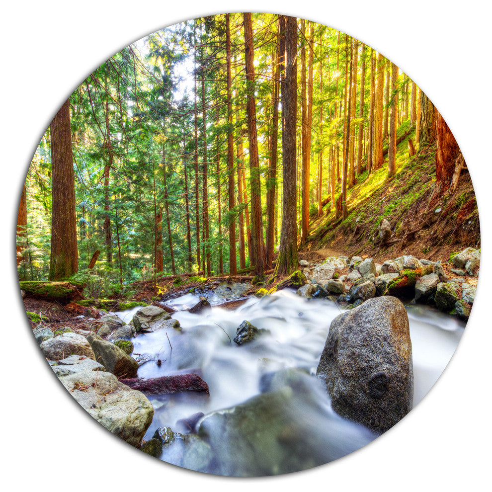 Creek Flowing Through Forest, Landscape Disc Metal Artwork, 23"
