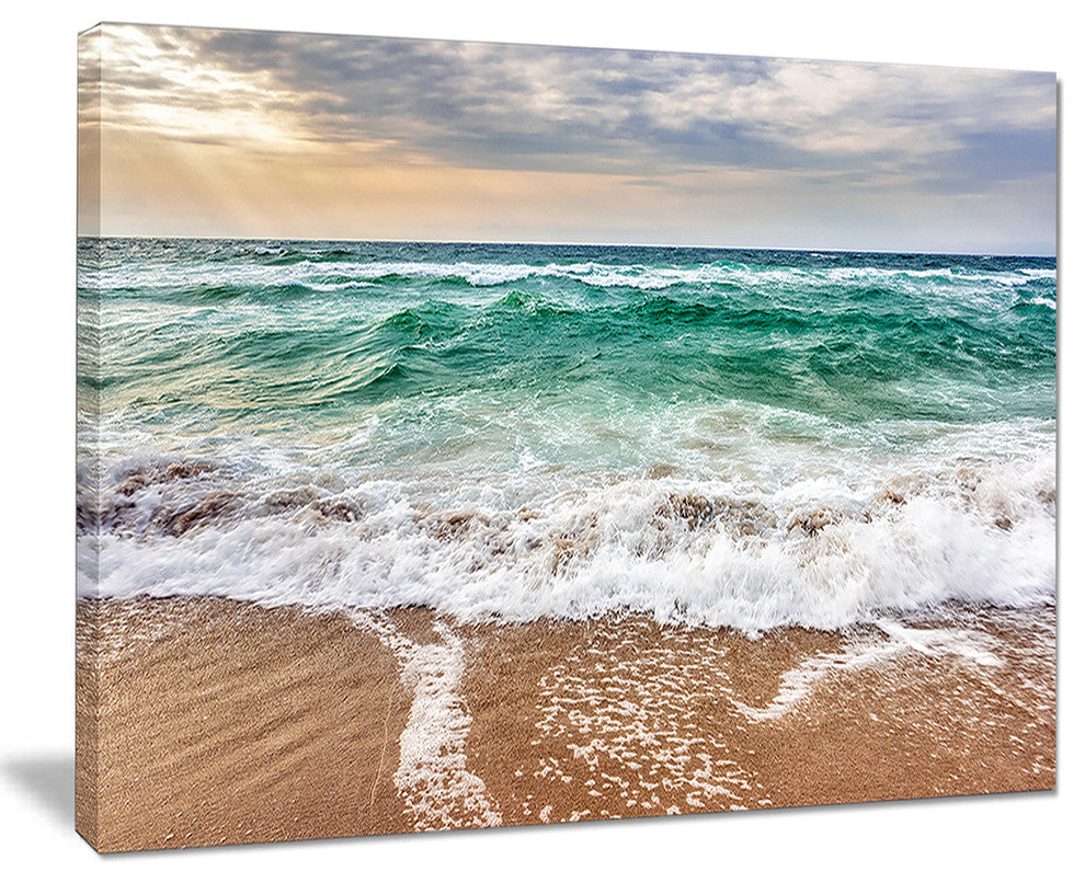"Crystal Clear Blue Foaming Waves" Seashore Canvas Wall Art, 20"x12"