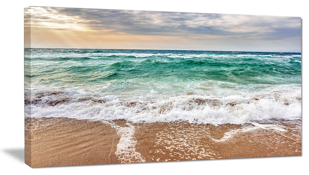 "Crystal Clear Blue Foaming Waves" Seashore Canvas Wall Art, 32"x16"