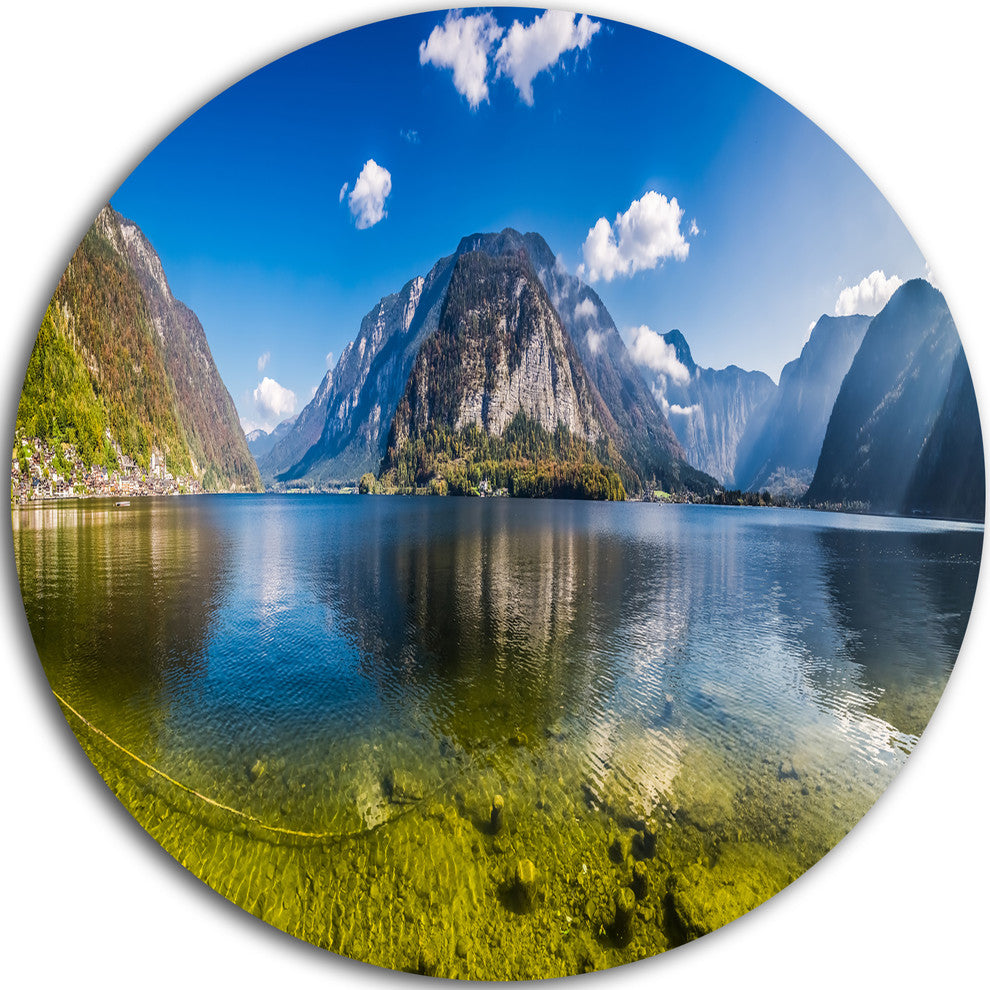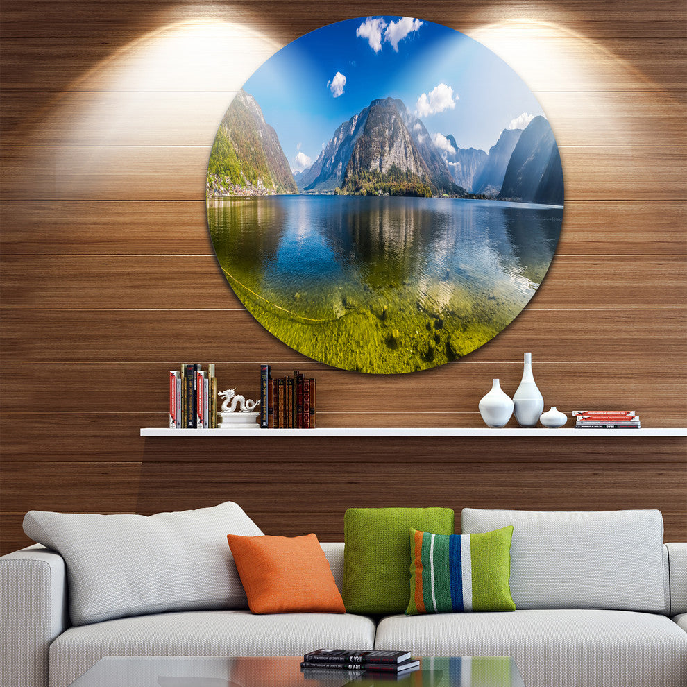 Bring Contemporary Abstraction to your home with this large Circle Metal wall art. This Crystal Clear Mountain Lake in Alps Metal Artwork makes it the focal point of any room or office.
