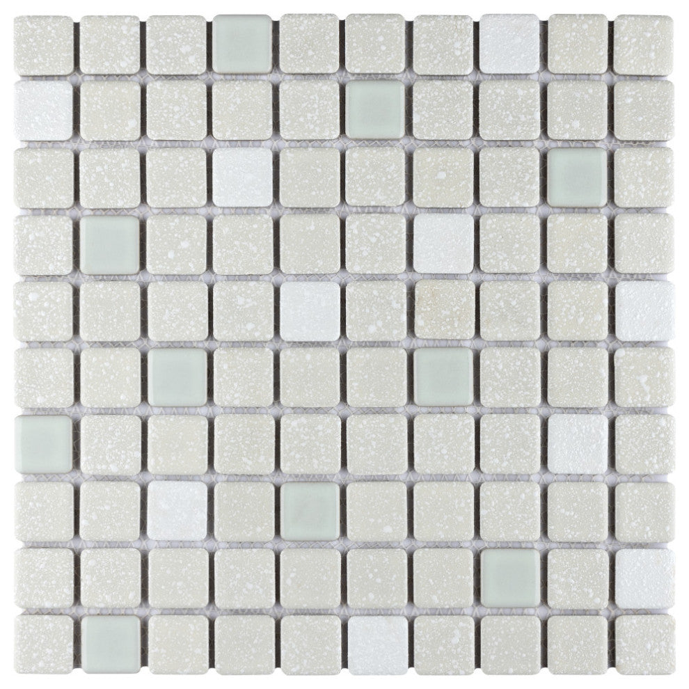 Our Crystalline Square Pistachio Porcelain Floor and Wall Mosaic Tile is an innovative twist on the classic mosaic. Featuring a mottled glazed surface, this product is comprised of square shaped chips with a muted pistachio green and white color palette. This slightly textured mosaic creates a classic and versatile look with slightly rounded squares arranged on an interlocking mesh to create a unique and seamless installation. This geometric porcelain mosaic is unique yet simplistic enough to integrate into any design, ranging from traditional style renovations to modern home projects. Its impervious, frost-resistant and ADA compliant features make this an ideal tile for both commercial and residential indoor and outdoor use, including backsplashes, bathrooms, showers, kitchens, patios, and entryways. Tile is the better choice for your space. This tile is made from natural ingredients, making it a healthy choice as it is free from allergens, VOCs, formaldehyde and PVC.