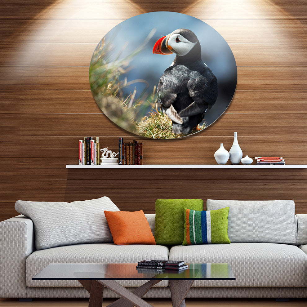 Cute Puffin Relaxing, Animal Round Metal Wall Art, 11"