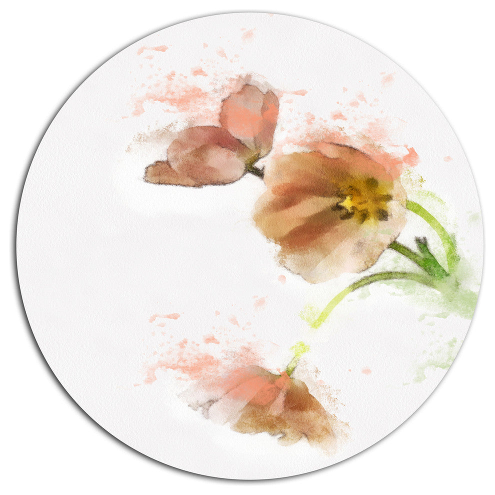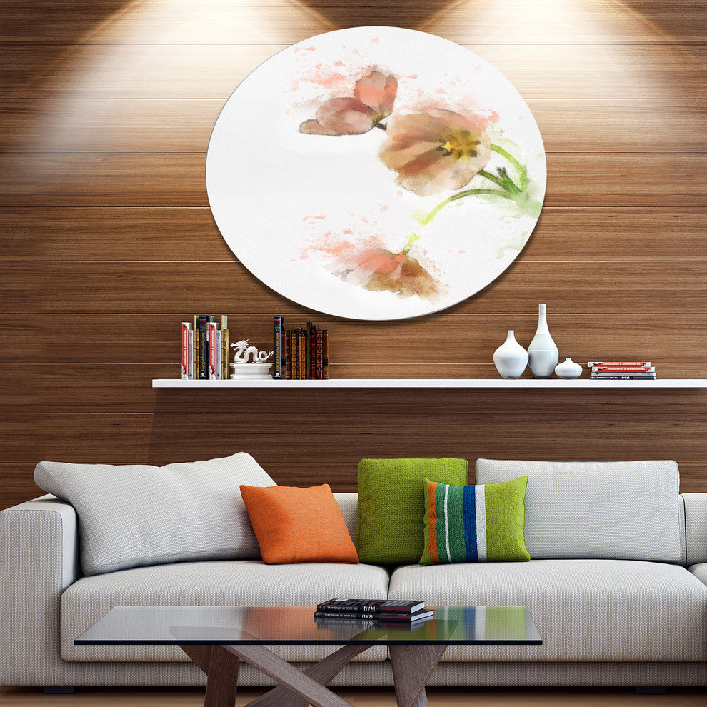 Bring Contemporary Abstraction to your home with this large Circle Metal wall art. This Cute Tulips Illustration Watercolor Metal Artwork makes it the focal point of any room or office.
