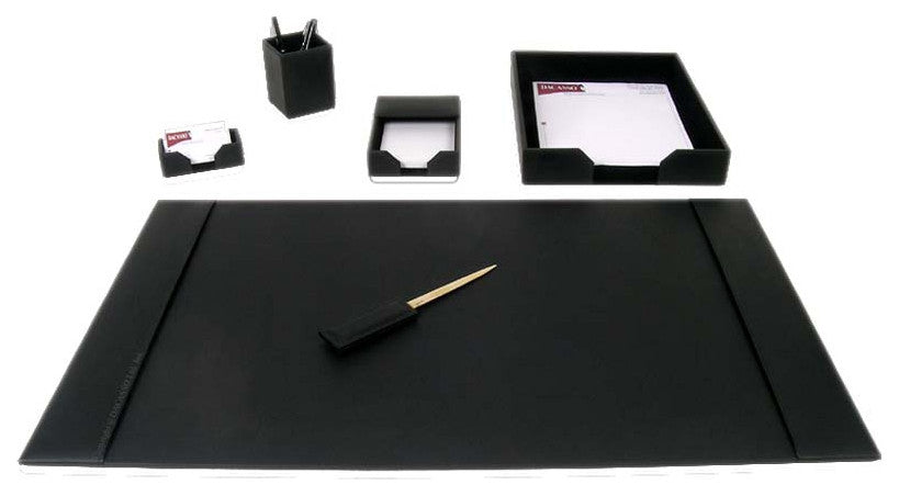 Black Bonded Leather 6-Piece Desk SetBlack Bonded Leather 6-Piece Desk Set