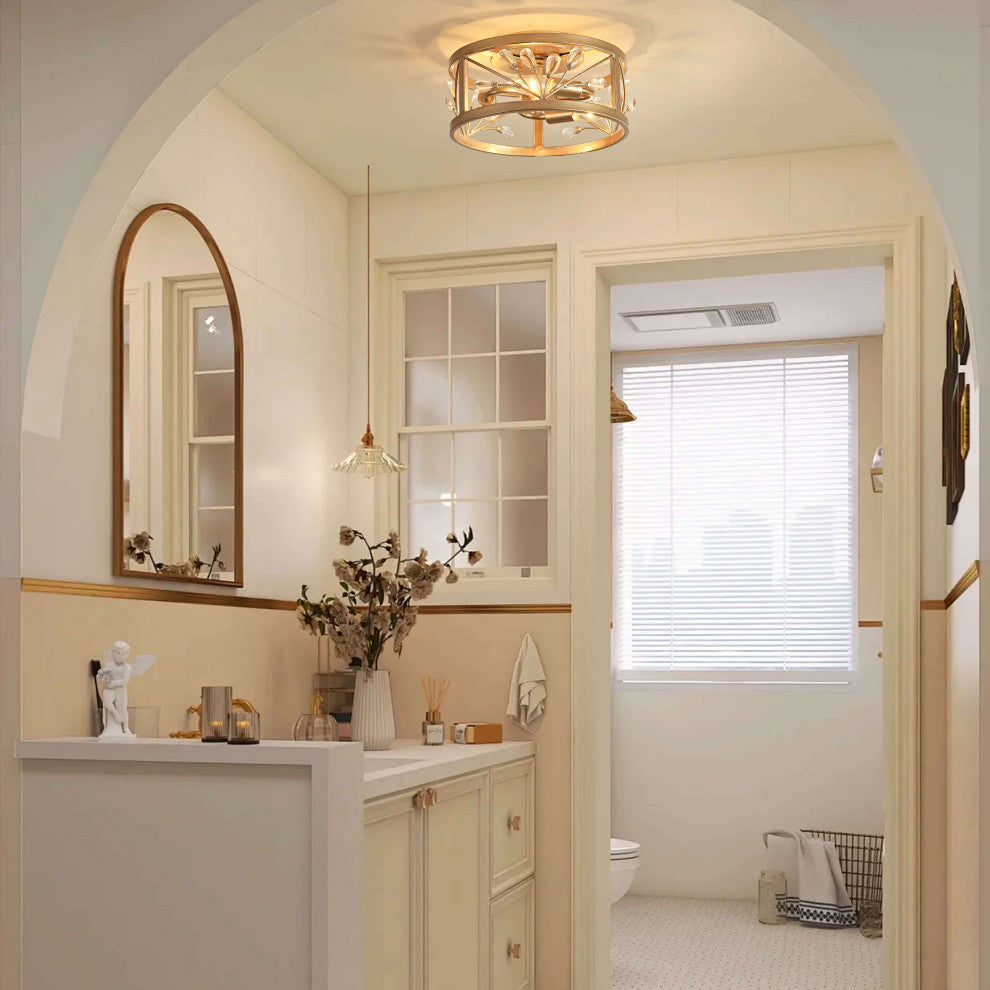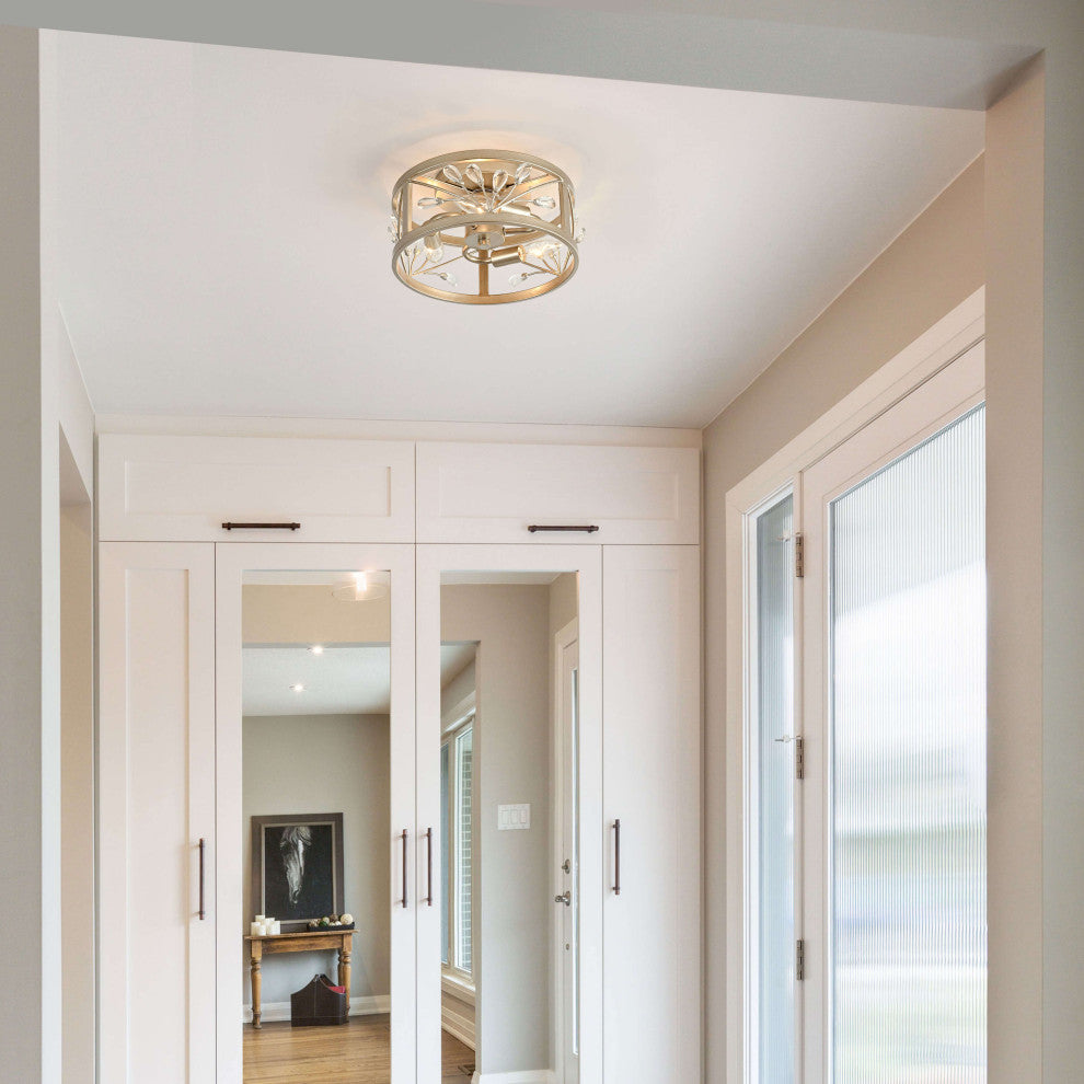 Daisy 3-Light Brushed Champagne Silver Metal Cage Drum Flush Mount