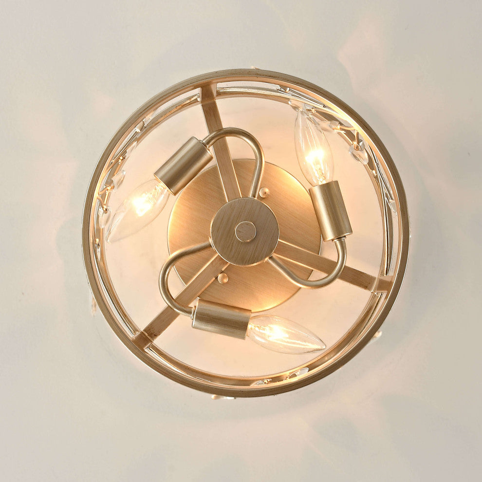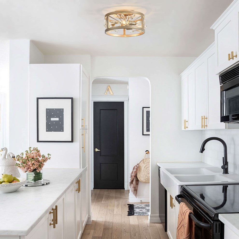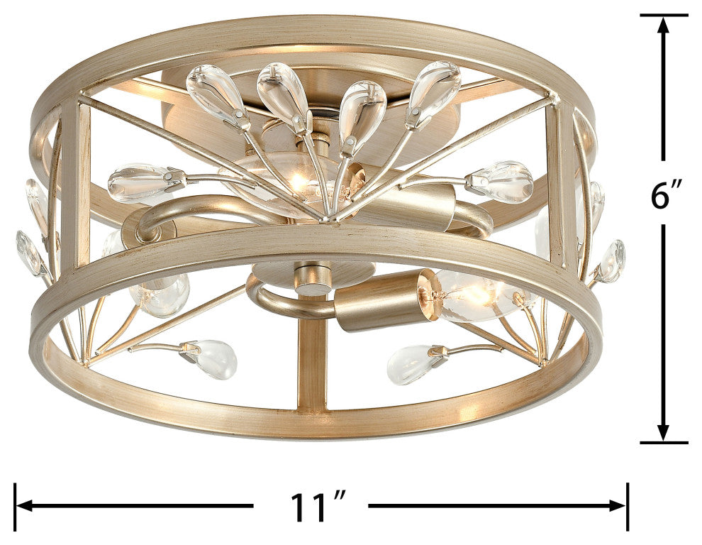 Title: Daisy 3-Light Brushed Champagne Silver Metal Cage Drum Flush Mount