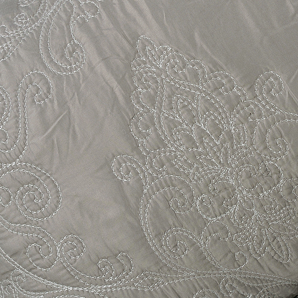 Damask Embroidered Quilted 4 Piece Bed Spread Sets, Ash Gray, King