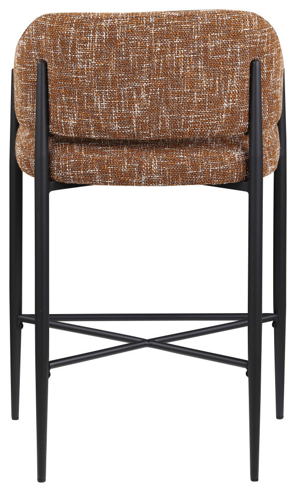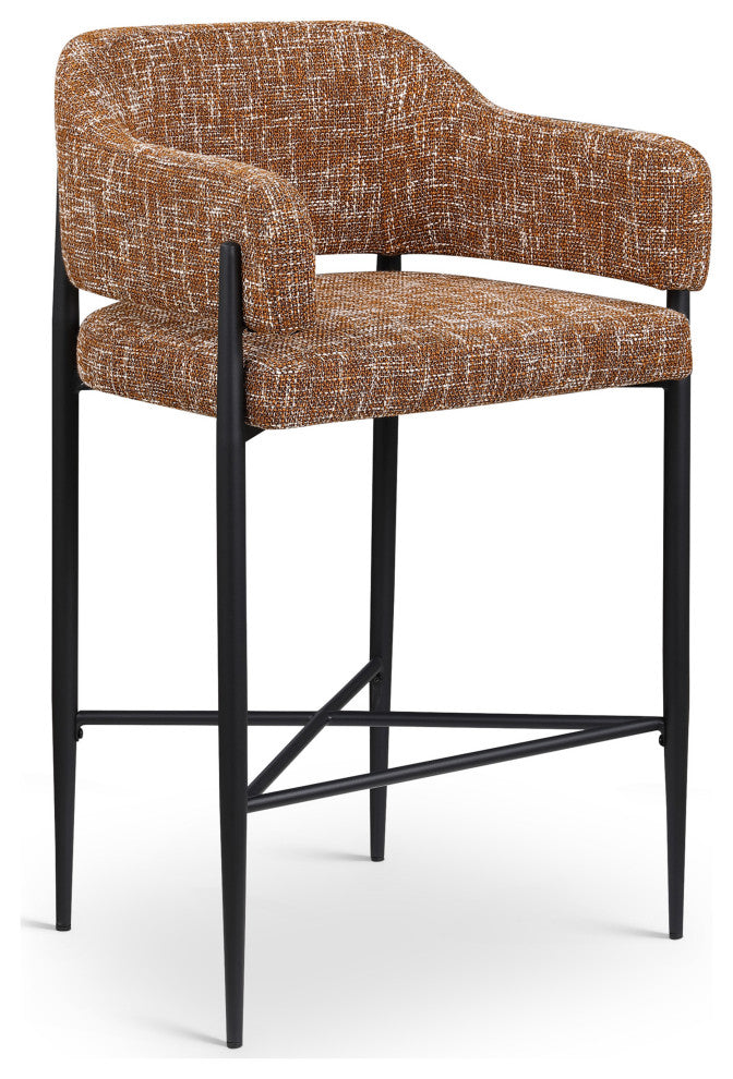Indulge in the allure of the Cognac Fabric Dame Counter Stool by Meridian Furniture. Its captivating design and luxurious Cognac Fabric elevate any space with effortless elegance. Crafted with precision and durability in mind, this stunning piece becomes the focal point of gatherings, fostering moments of connection and warmth. Embrace sophistication and style with the Dame Counter Stool, a testament to exquisite taste and timeless beauty.Overall Product Dimensions: 23.5" W x 20" D x 37" HRich Interwoven Polyester FabricMainly Cognac Fabric With White WeaveMatte Black Iron FrameCounter Height StoolContemporary DesignSeat Dimensions: 17.25" W x 17" D x 26.75" HArm Height: 33.5"Back Height: 11"