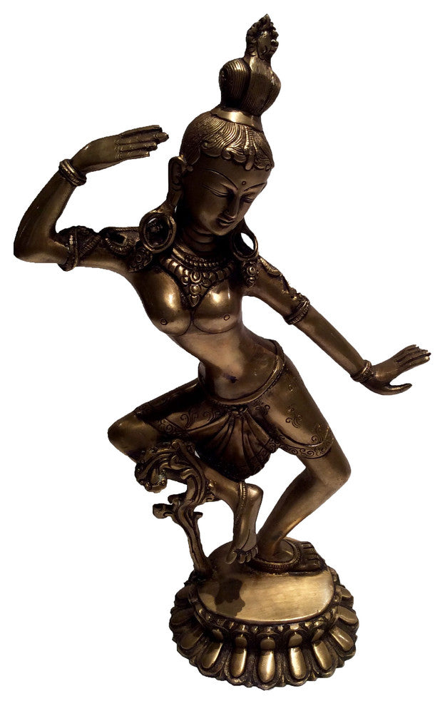 Decorate a bookcase or create a unique display on a console table with the Dancing Lady Figurine. Measuring 9 by 16 inches, this piece is made of brass and is sure to stand out in your space.