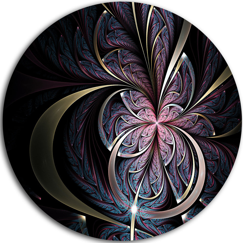 Bring Contemporary Abstraction to your home with this large Circle Metal wall art. This Dark Blue Fractal Butterfly Flower Metal Artwork makes it the focal point of any room or office.
