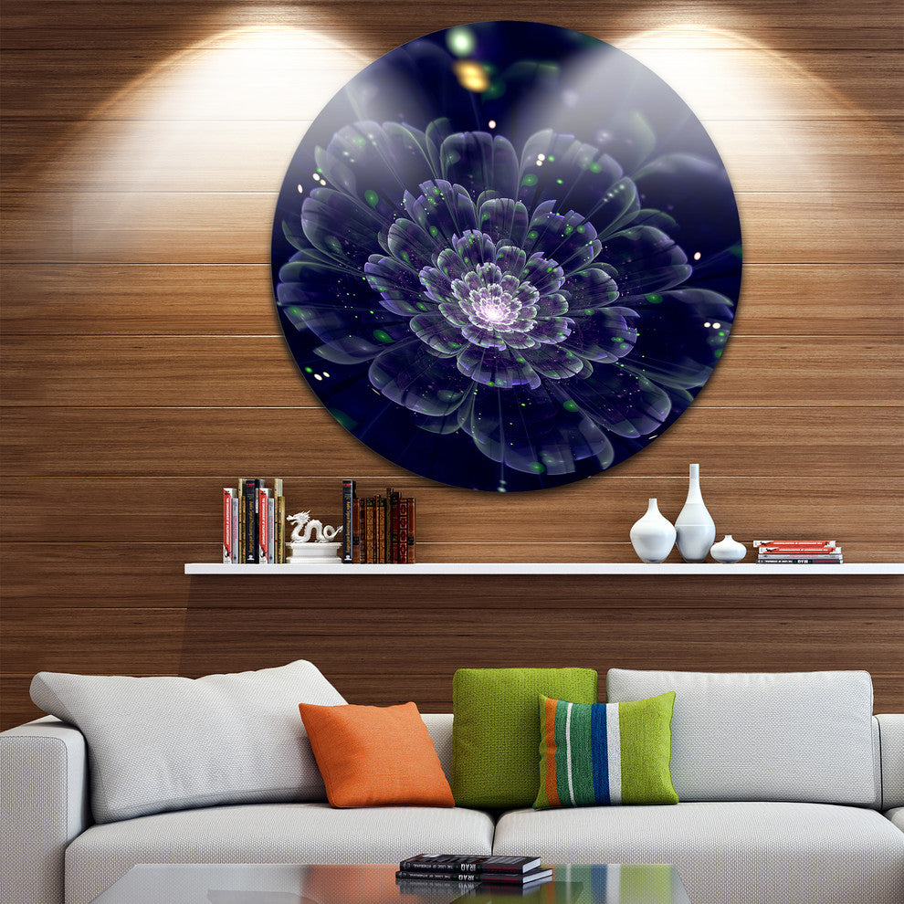 Bring Contemporary Abstraction to your home with this large Circle Metal wall art. This Dark Blue Fractal Flower Digital Art Metal Artwork makes it the focal point of any room or office.