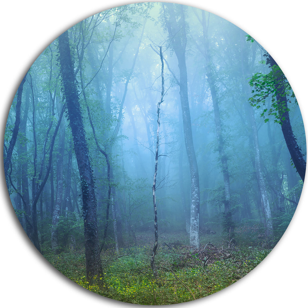 Dark Foggy Forest Trees, Landscape Photo Large Disc Metal Wall Art, 23"
