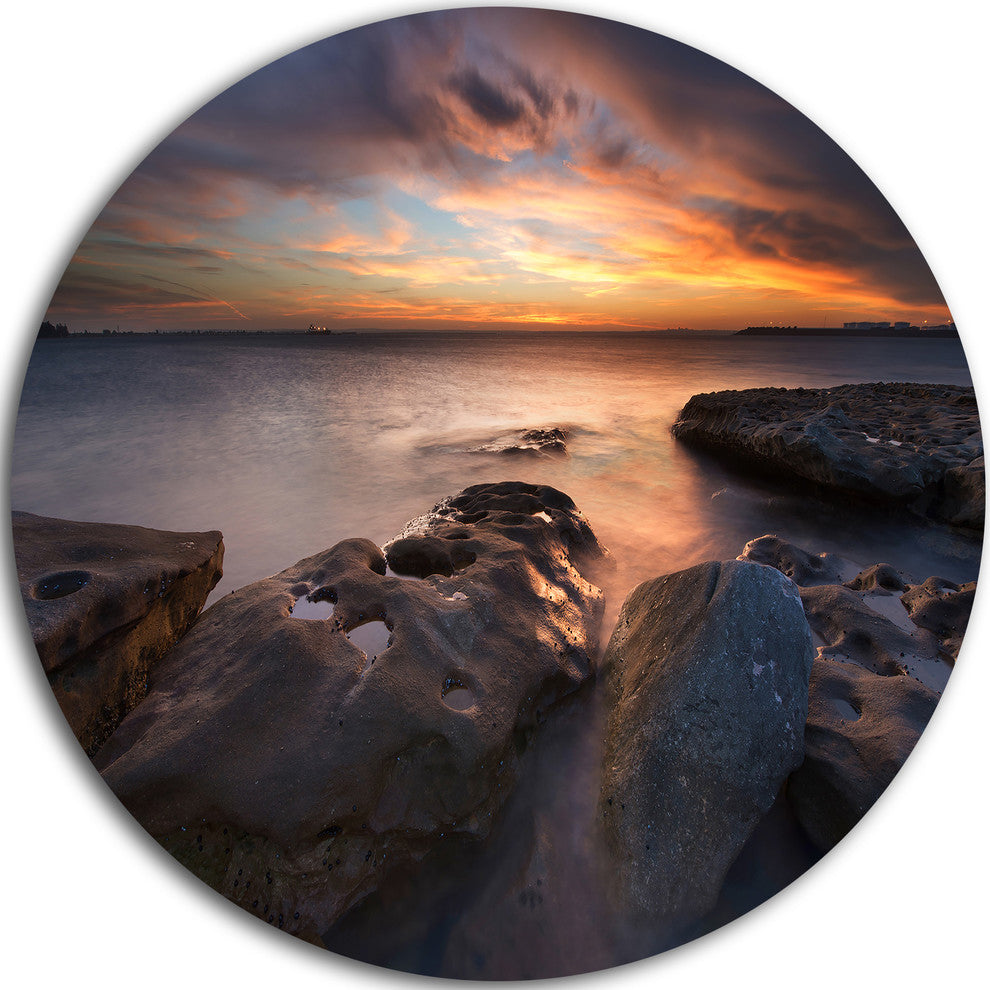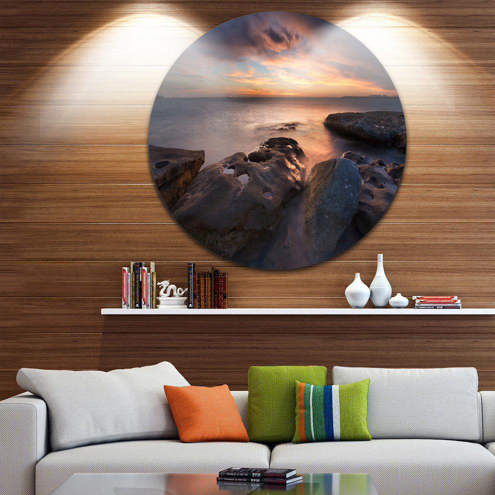 Bring Contemporary Abstraction to your home with this large Circle Metal wall art. This Dark La Perouse Beach in Sydney Metal Artwork makes it the focal point of any room or office.