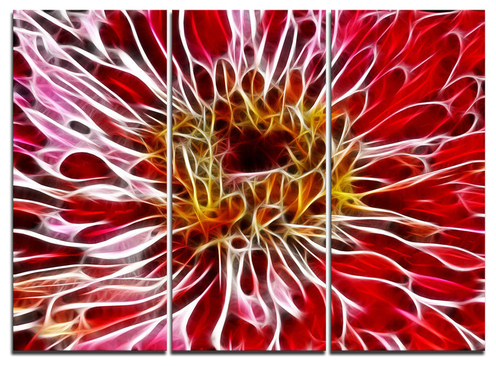 "Dark Red Digital Art Fractal Flower" Metal Wall Art, 3 Panels, 36"x28"