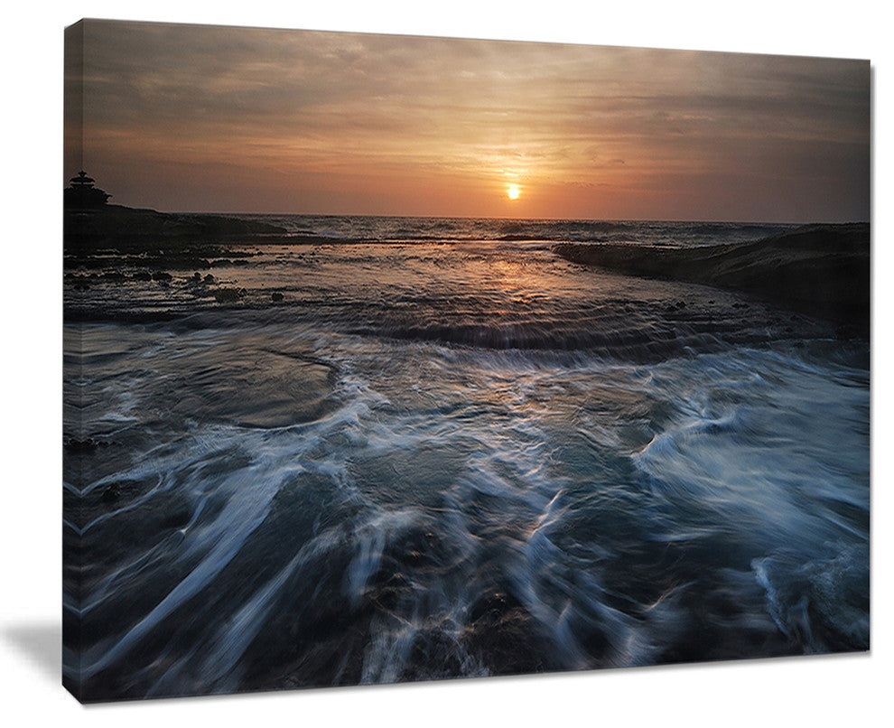 The Dark Seashore with Rushing Waves canvas art print is sure to make an impression on anyone who sees it. This artwork is gallery wrapped around a 1-inch solid wood frame and arrives carefully packaged and entirely ready to hang on the wall. Design Art only uses the highest resolution and pigments to ensure a crisp colorful print that is never faded or pixelated. This artwork is sure to be a conversation starter in any home or office.