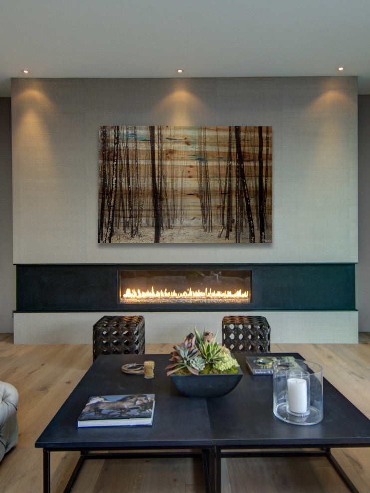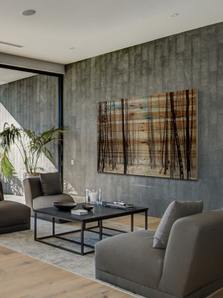 "Dark Thin Trees" Painting Print on Natural Pine Wood, 60"x40"
