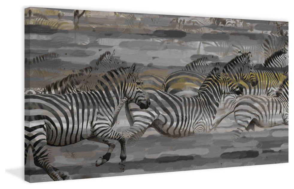 Striking and unique, the "Dashing Zeal" Print on Canvas by Parvez Taj will bring your walls to life. Printed on canvas, this 45 inch wide by 22.5 inch tall contemporary artwork will make a statement in any living room, dining room, or bedroom.- Fine art canvas print by Parvez Taj- Professionally hand stretched- Gallery wrapped in sustainable, non-warping wood- Arrives ready to hang- Made in the USA- Includes a certificate of authenticity- Artist signature on the front
